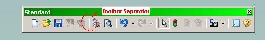 ok so since i don't know that i can make my own customizedtoolbarsunless i empty out one of the pre-existing ones and refillit withwhatever icons i want. i'd like to be able to insertseparatorslike the ones that already exist. but when buttonstheseparators contain are removed the separators are removed aswell.searching high and low for information on this i havefoundnothing.