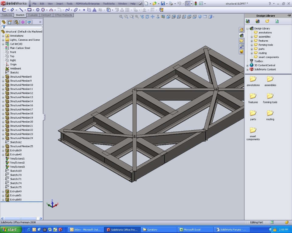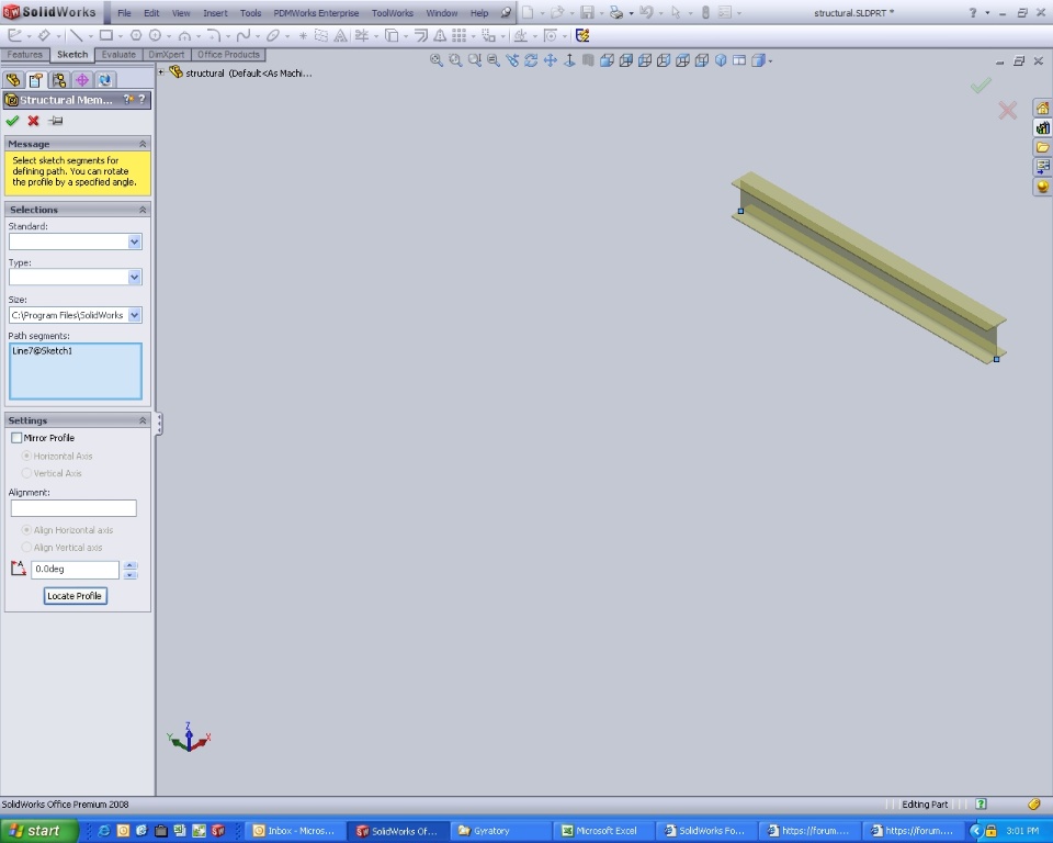 I have created structural member using weldment profiles.