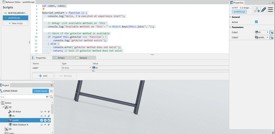 console.error("Unable to find cube2. Make sure the name '3D Actor' is correct.");