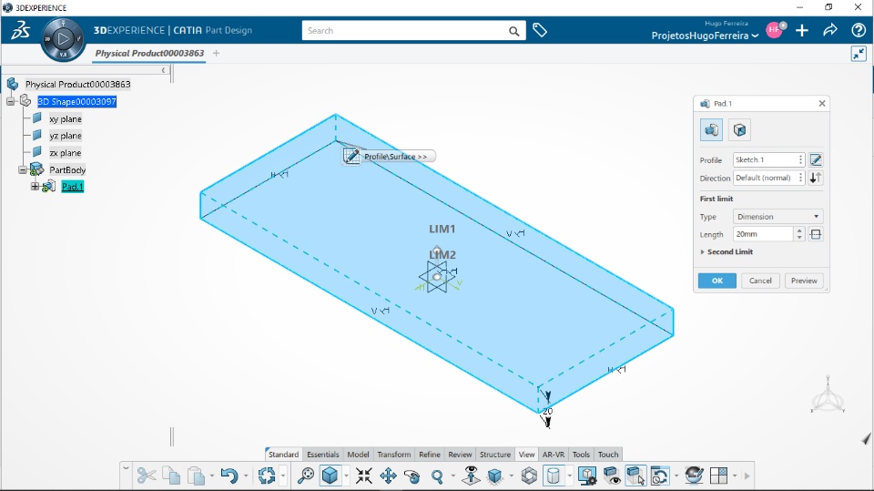 After I do a rectangle on the sketch and then a pad e.g., the part is visible while I defining the pad but when I click OK it disappears. Why does this happen?
