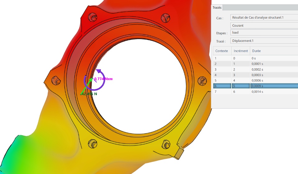 When I look at the results, in particular when I put a sensor on the surface where the force was applied, the force seen by the sensor is almost 3 times the force that I entered in the step's input.