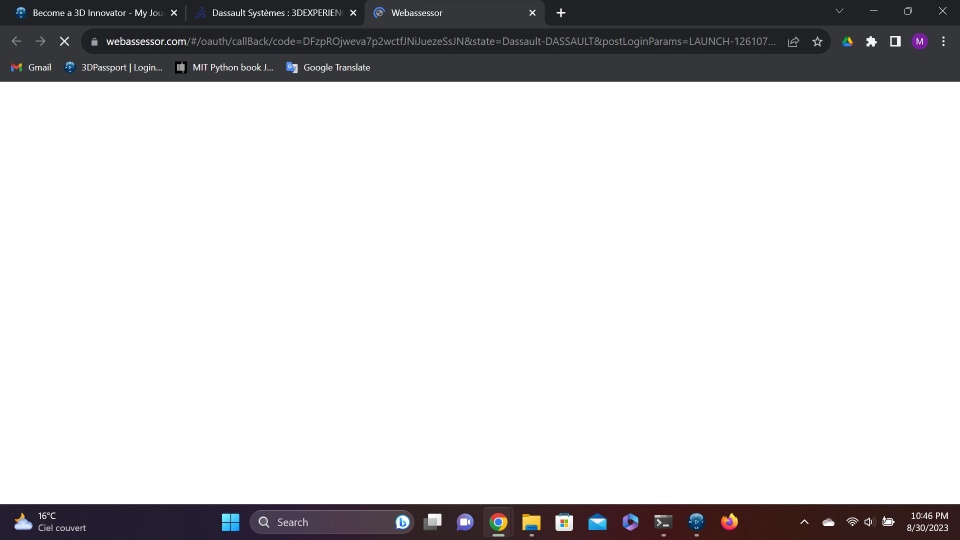 Hello, I'm trying to take the 3DEXPERIENCE CATIA - Mechanical designer students exam but a blank page only shows up. The webassessor new tab opens up but stays blank and keeps refreshing endlessly. On the Edu Platform it states the exam is "in progress" which obviously is not the case. I really need to take the exam this week it's been asked to me for my internship in September. If someone could sort it out... Cheers