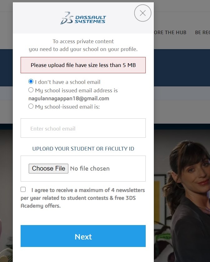 I can't update my college name in 3DExperience edu space profile.How can i do this.I tried to upload my college id but it's showing some error.Please look trough it and help me with this.Please help me to solve this issue.