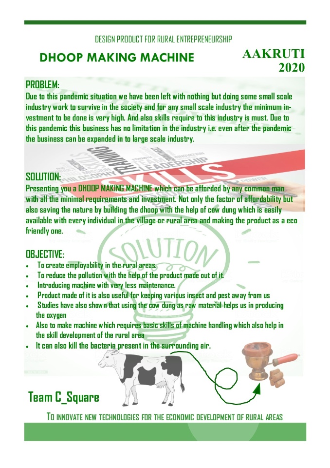 Team tag line:-TO INNOVATE NEW TECHNOLOGIES FOR THE ECONOMIC DEVELOPMENT OF RURAL AREAS