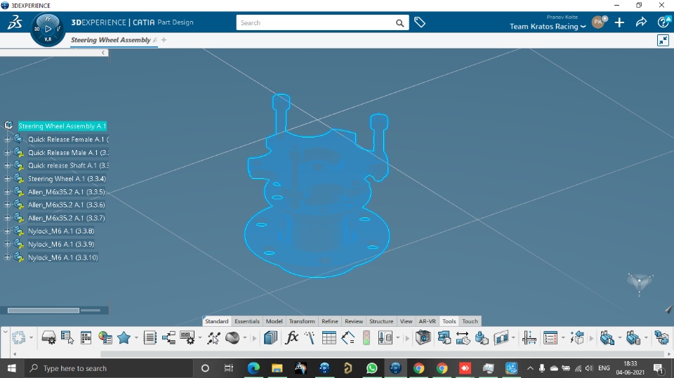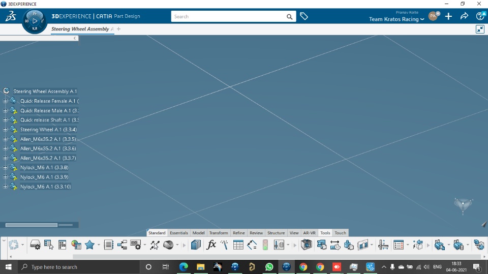 I am Pranav Kolte from Team Kratos Racing. I am trying to open the assembly in CATIA and after opening I am not able to see it. If I click on Tree then that particular part selection is visible I am attaching the screen shots your reference.