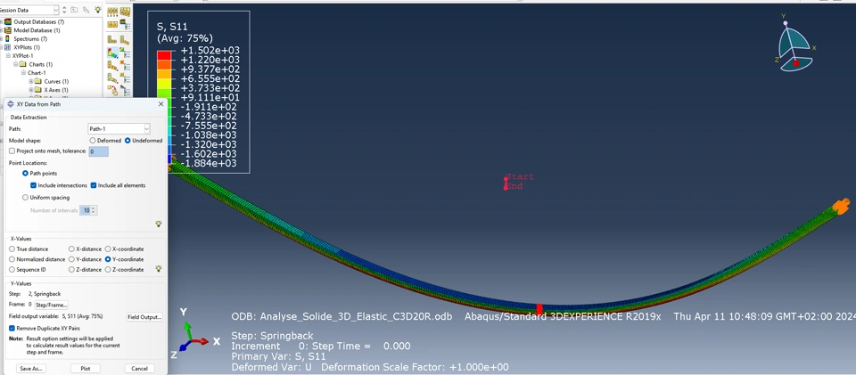 I managed to plot with a path in the volume element case, but I don't see how to do that with the beam elements because I only have access to the values along the axis of the beam.