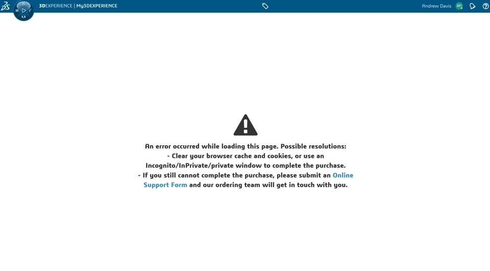 When I try to follow the advice of clearing cache/clearing cookies/opening in a private browser, I still get the same error. Haven't been able to access the place to buy/pay the \\\$60 student version of CATIA. What should I do?