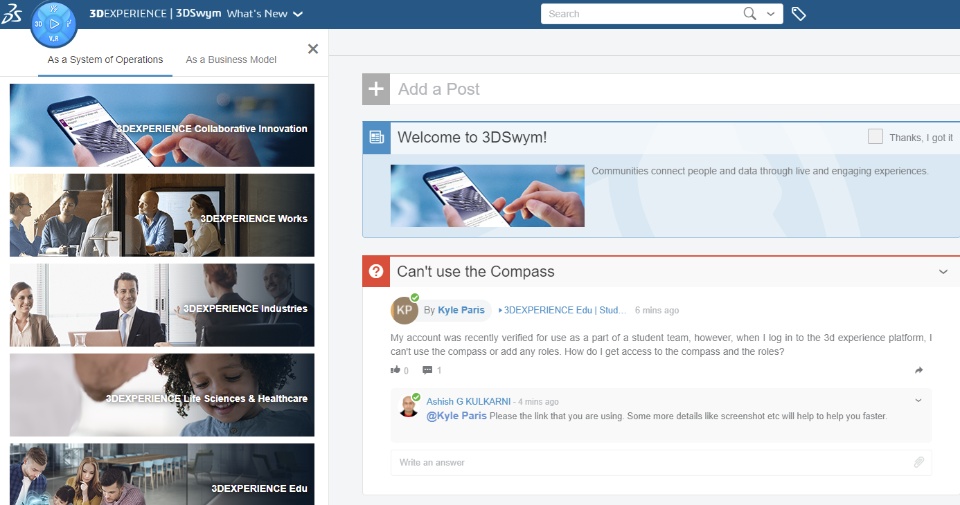 My account was recently verified for use as a part of a student team, however, when I log in to the 3d experience platform, I can't use the compass or add any roles. How do I get access to the compass and the roles?