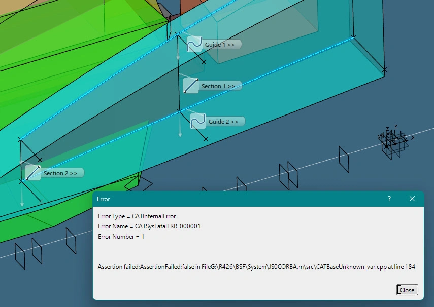 Hi All, Whenever I tried to use multi-section surface, a CATInternal Error pops up.
