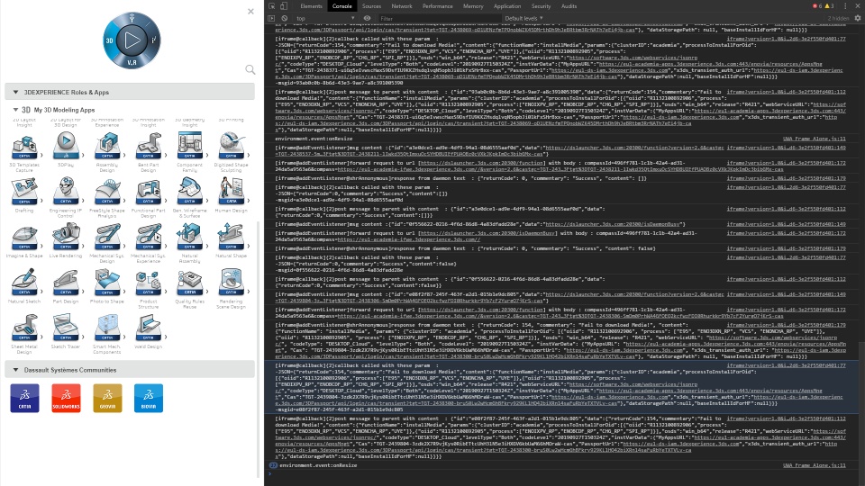 {"returnCode": 154, "commentary": "Fail to download Media!", "content": {"functionName": "installMedia", "params": {"clusterID": "academia", "processToInstallForOid": [{"oiid": "R1132100892906", "process": ["E95", "ENO3DXN_RP", "VCS", "ENONCHA_RP", "UYE"]}, {"oiid": "R1132100892905", "process": ["ENOIXPV_RP", "ENOBCDF_RP", "CHG_RP", "SPI_RP"]}], "osds": "win_b64", "release": "R421", "webServiceURL": "https://software.3ds.com/webservices/jsonrpc/", "codeType": "DESKTOP_Cloud", "levelType": "Both", "codeLevel": "20190927T150324Z", "instVarData": {"MyAppsURL": "https://eu1-academia-apps.3dexperience.3ds.com:443/enovia/resources/AppsMngt", "Cas": "TGT-2439804-3zdk2X7R9vjKys0RibETtcUhH3lN5e3iHXGV6kbUaM66hMOraW-cas", "PassportUrl": "https://eu1-ds-iam.3dexperience.3ds.com", "x3ds_transient_auth_url": "https://eu1-ds-iam.3dexperience.3ds.com/3DPassport/api/login/cas/transient?tgt=TGT-2438300-bruS0Lw2wHcmGhBFkry929KL1HQ42biXRn14saFuRbYeTXTVLv-cas"}, "dataStoragePath": null, "baseInstallIdForHF": null}}}