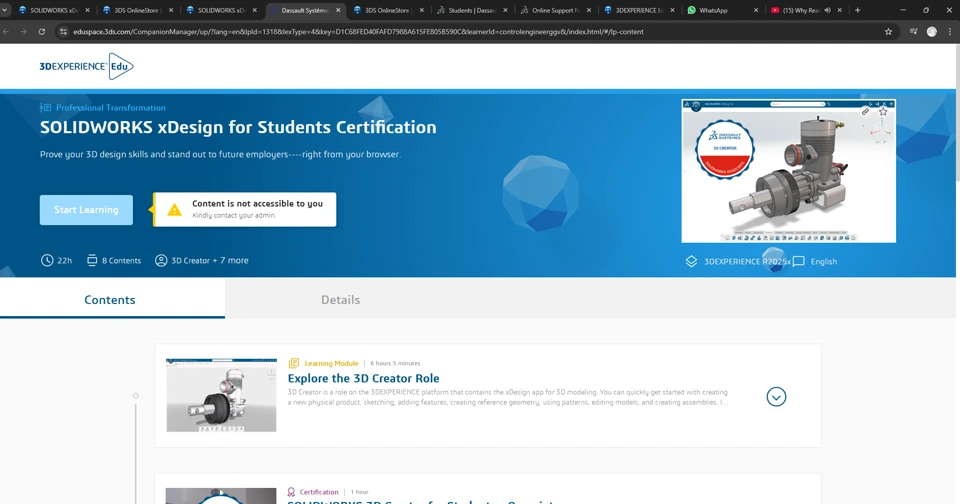 I've already purchased the SOLIDWORKS xDesign for Students package. The page mentions that it includes two certifications.