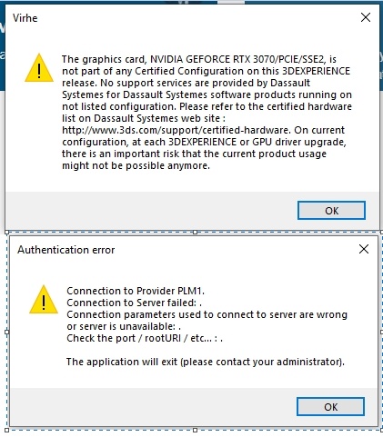 After this error Catia shuts down on start up. How to fix? Others have had the graphics card error but software still works with that, but the authentication error is what shuts down my 3d experience.