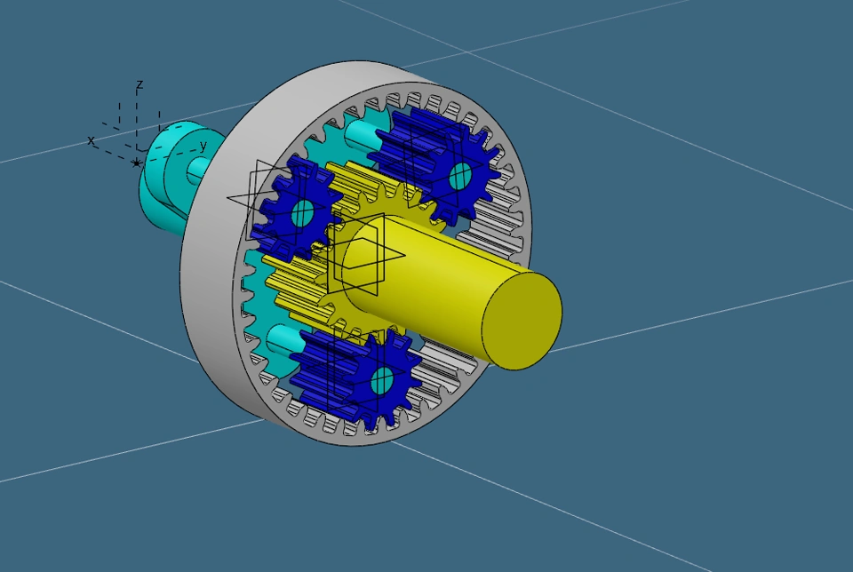 However, I have been struggling for more than two weeks to properly define the constraints between the gear teeth. My goal is that when I rotate the sun gear, the three planetary gears should be correctly driven, respecting the kinematic relationships of an epicycloidal gear train.