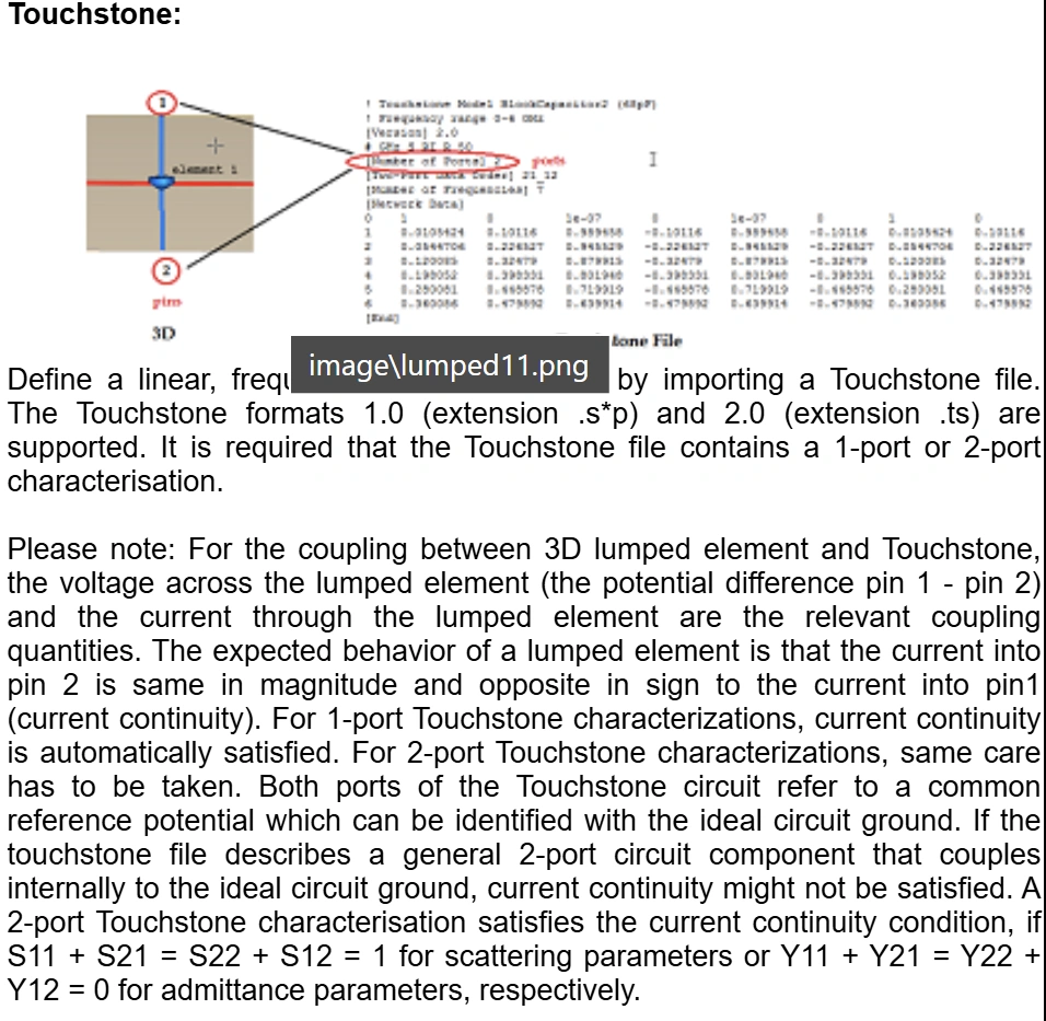 The picture in touchstone of element lumped is not clear, and i do not know how to import s2p file in this function to simulate, could you help give some tips?