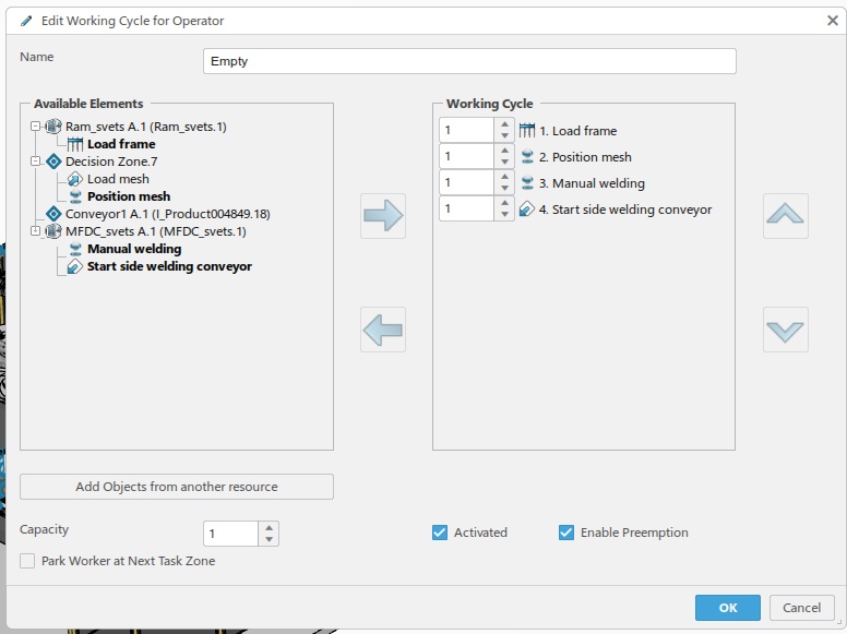 Hi! We want to have a maintenance break for our production line, and we have tried to use Periodic actions as well as Failures, However, they do not take priority over the operator's work cycle, meaning the simulation stops, because the operator does not perform the maintenenace activity. The operator has a set Work Cycle with tasks, but he gets stuck in this cycle and can not break it to do maintenenace. Furthermore, maintenance seems to not be an option in Work Cycle Management. Any advice on this problem?