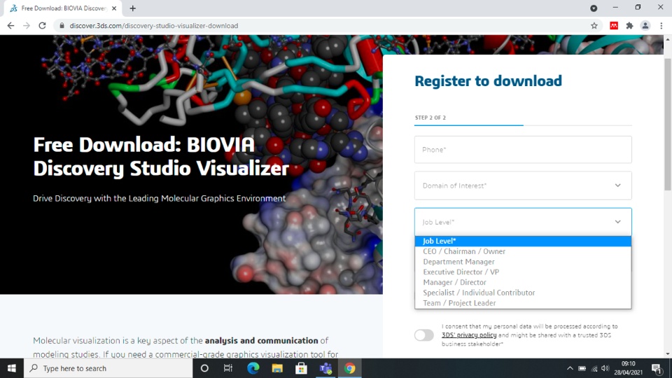 I had downloaded it on a previous laptop but don't remember having to fill in a job level.