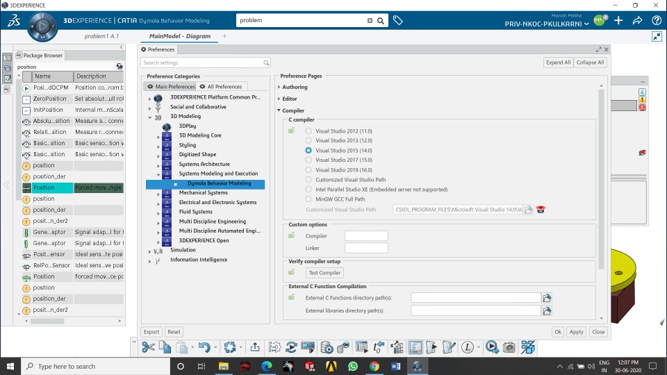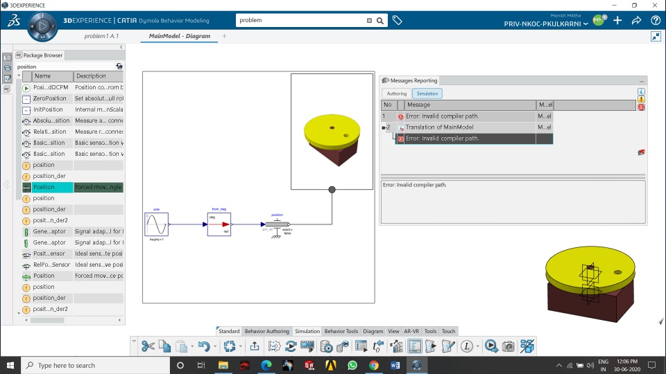When I am doing Logical Simulation ar that time the compiler error comes, I have seen from the profile - Preferences - 3Dmodeling - Systems modeling and Execution - Dymola Behavior modeling In this anyone of the options is not working what is Problem?