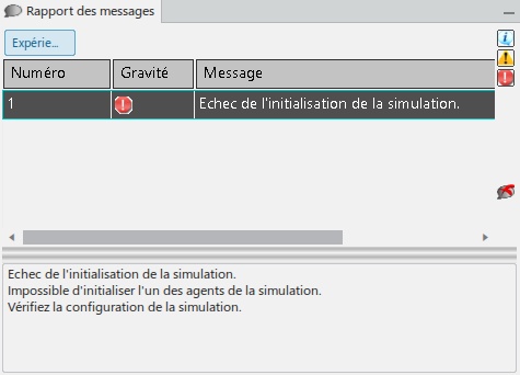 Un message indiquant que la simulation n'a pas pu être initialisée apparait.