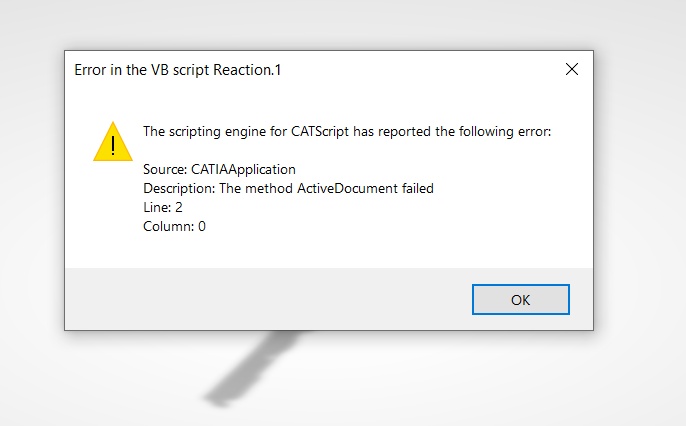 When the code is running in Visual Studio Tool Application (VSTA) that is connected to 3D Experience part design, it shows the respective error that is attached below saying that "The method ActiveDocument failed". But, if I click on "OK", then it get executed and gives the results. But as I cannot click on "OK" always, I wanted to solve this issue. If someone knows about this, kindly help me with this. The error Image and the video related to the situation faced are attached below, kindly check them and help me.