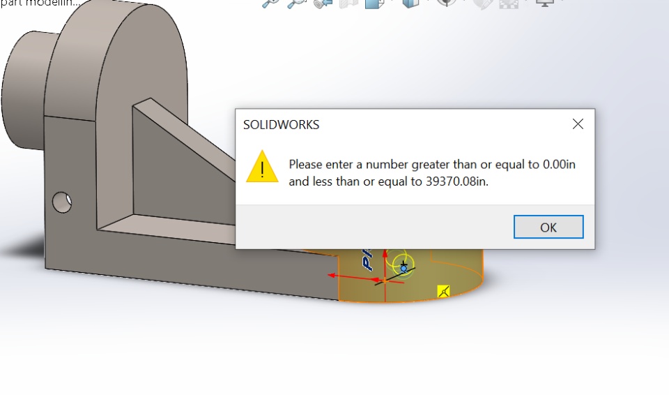 I have updated to Solidworks 2020-21 version. When I am trying to use hole wizard I am getting an error please enter a value greater than or equal to 0.00 or less than or equal to 39370.08, even though the value of the hole is greater than 0. I am using it IPS system. I kindly request anyone of you to help me with this issue.