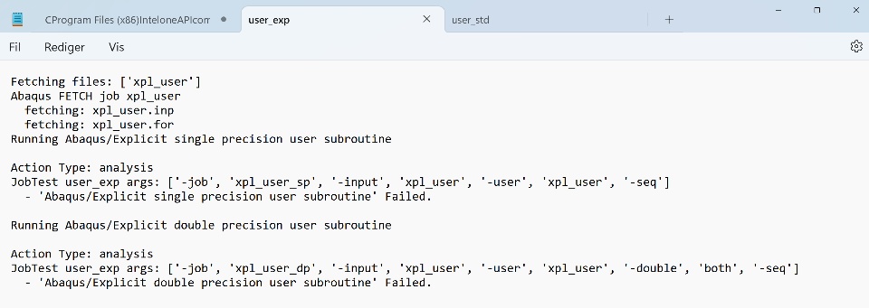 When I run the Abaqus verification I get the message that the checks for the use of user subroutines in Standard and Explicit failed, but the log files do not give any specific errors as the two attached pictures show.