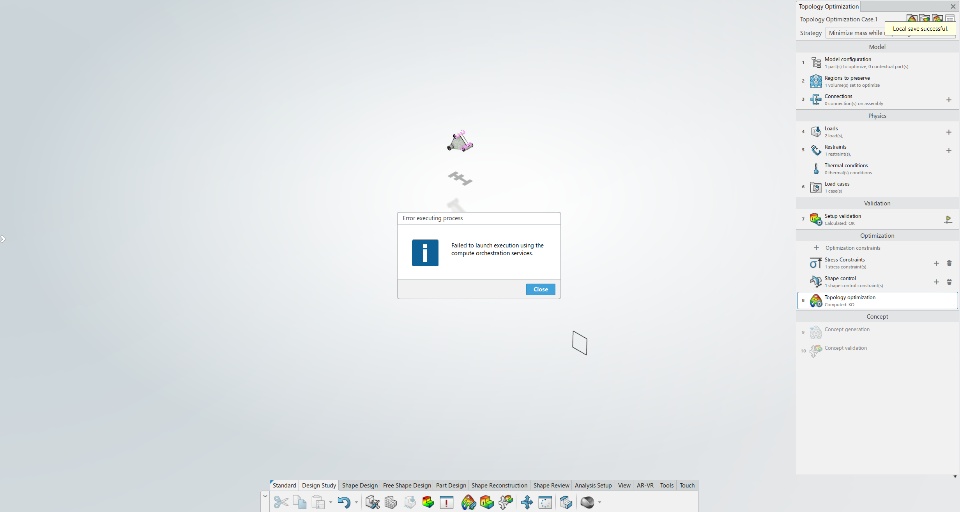 I've been experimenting with the Functional Generative Design App but when trying to compute topology optimization the message from the attached picture appears.