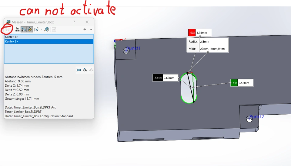 For me it is not possible to messeaur distance of two holes. If I acitvate meassurment, it dont let me choose "center point" so I can meassure centerpoint to centerpoint.