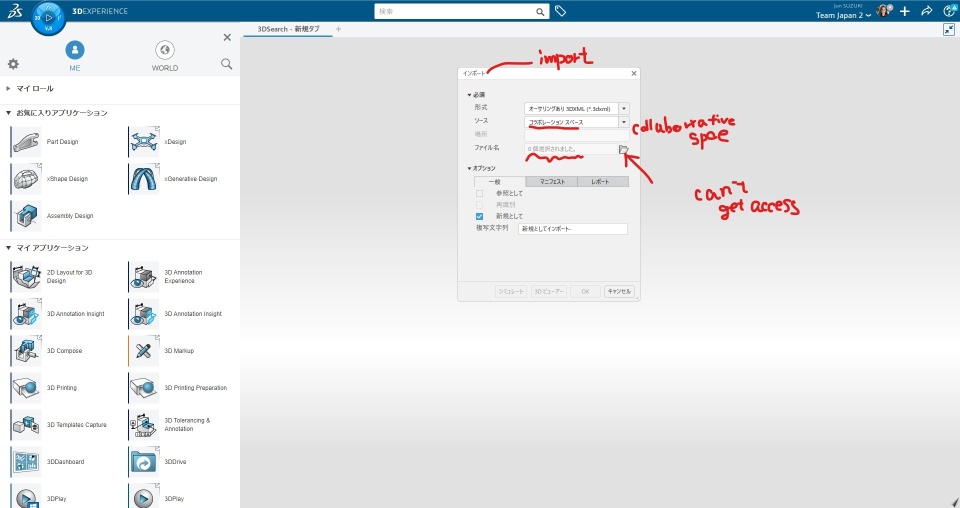 I have created part files in xDesign, which are supposed to be saved in a collaborative space. When I try to import those files in Part Design app, I cannot get access to the file for some reason. Do you know how to import items in PART DESIGN?