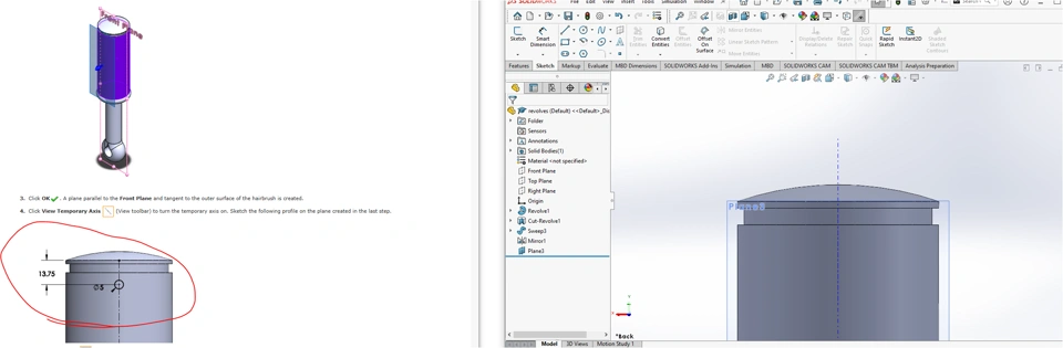 I have been trying to recreate the circled image in the left by using the smart dimension after turning on the sketch button but it does not work. Could someone please help me in fixing the issue which I am encountering?