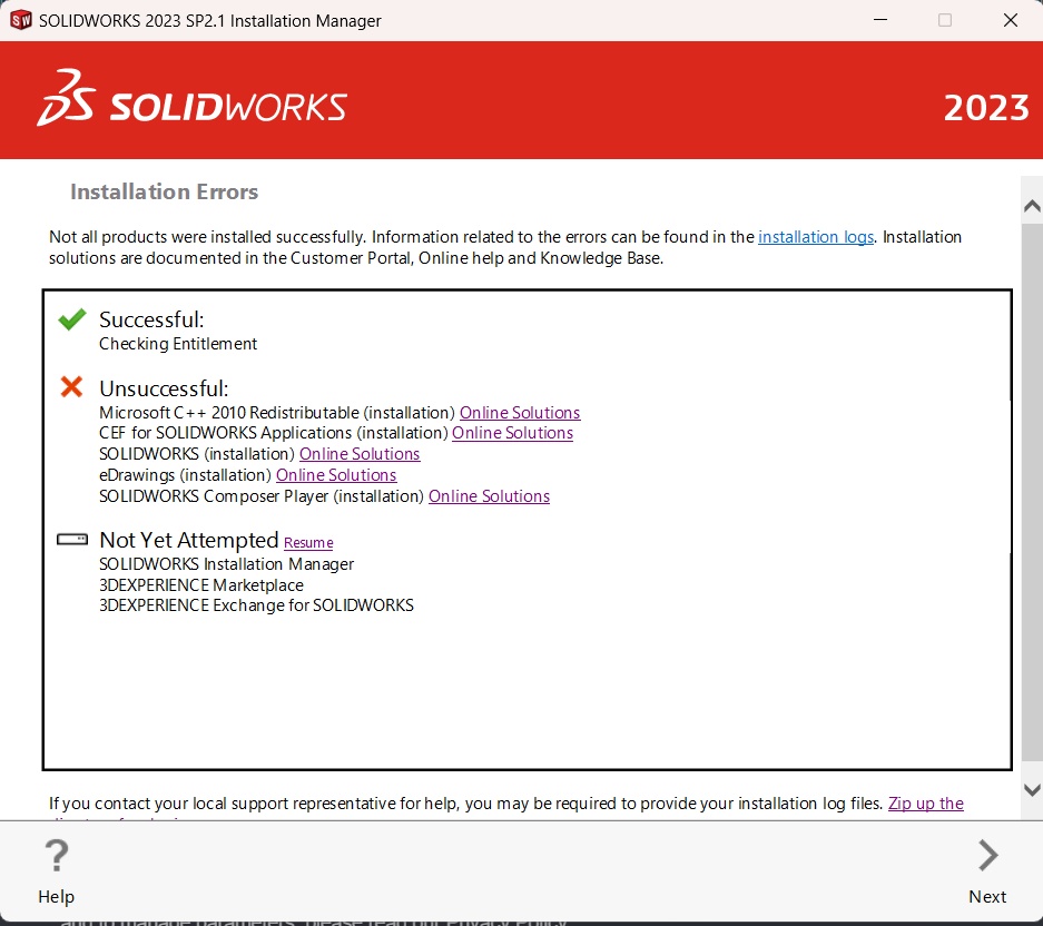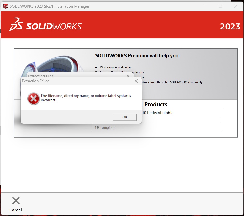Im trying to install my student version of SW 23 but i get these errors. (Downloading the files goes right but my compter doesnt install them)/