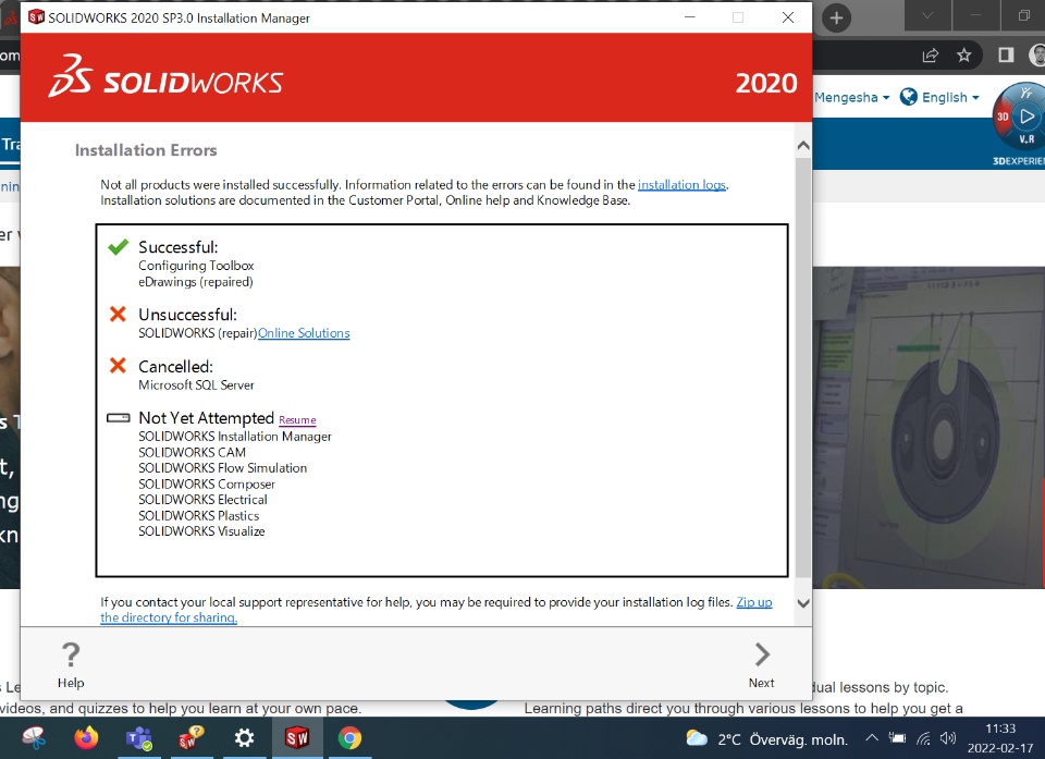 HI,I am using Solidworks 2020 and I have a difficulty to un install 2020 and install 2022,any thoughts on the error messages__?