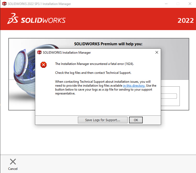 I uninstalled Solidworks (with student license) and am now trying to re-install with a new student license but the installation fails with error message "fatal error 1624". Any ideas what might be wrong? Thank you.