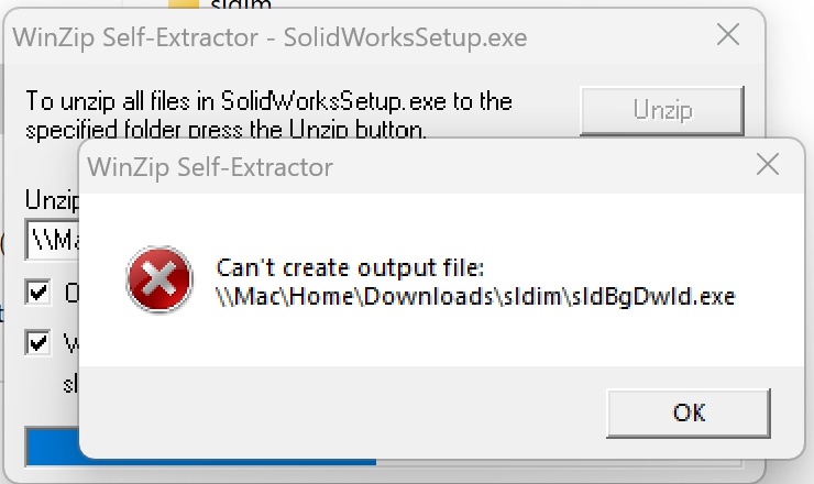 When running the SolidWorksSetup.exe I get the following error during extraction, who can give me advice?