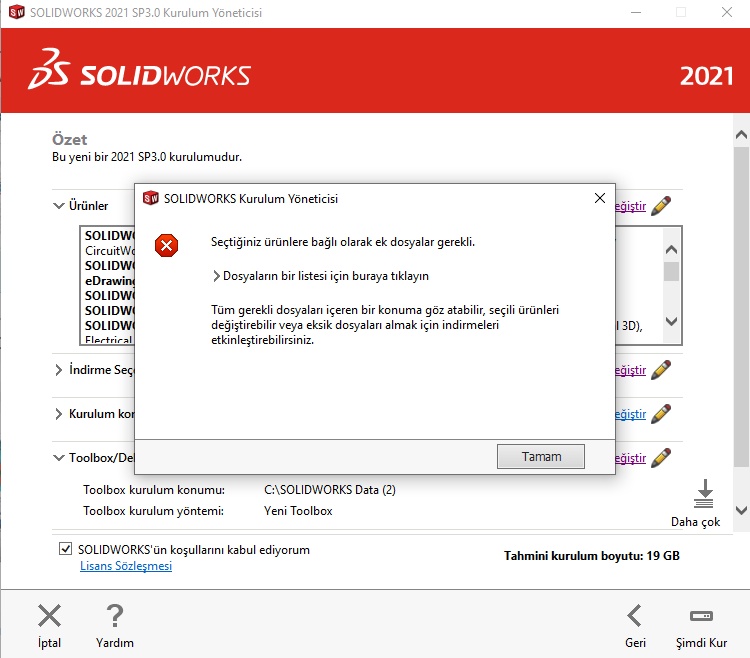 The text says 'Additional files are required depending on the products you selected'. Could somebody help me with this?