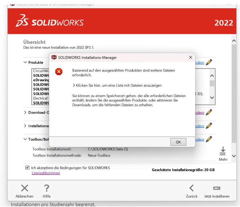 Während der Installation von SW 22 bin ich auf ein Problem gestoßen. Ich erhalte folgenden Fehler obwohl ich alle Schritte richtig gemacht habe. Könnte mir jemand sagen, wie ich diesen beheben kann? Vielen Dank!