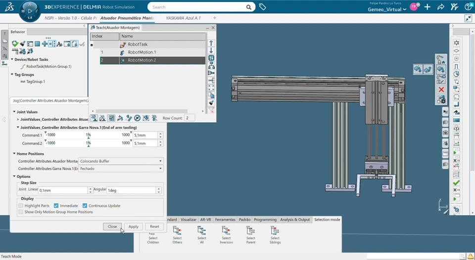I’m trying to make the movement of a Pneumatic Actuator with a gripper. It’s not a robotic arm, but I’m also using a robotic arm in the process. I’ve already managed to create the tasks for moving the robotic arms, but with this actuator I followed the same steps and it gives an error saying: "Unable to simulate the robot move RobotTask/RobotMotion.1. The assigned resource Atuador Montagem is not a robot."
