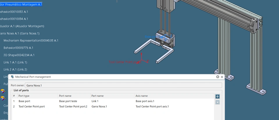 The main point for me is to make the Task work. I’m also sending a screenshot of the mechanical ports, and I used the Set Tool function to attach the gripper, following the same step-by-step as with the robotic arm.