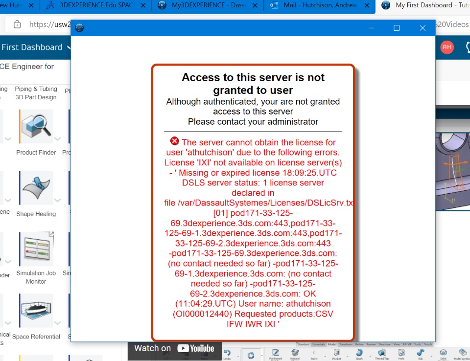 I recently cancelled my Student license in order to purchase the Engineering Student license for the ability to use DELMIA functions. Specifically the "Milling Machining" functions offered. After purchasing the Engineering Student version and trying to open the Milling Machining app the error message shown in the screenshot pops up. Is there a waiting period after purchasing in order to use the Milling Machining app that comes with the 3DEXPERIENCE Engineer for Students? From what I have gathered this error message pops up even when I try to open other apps, like CATIA apps as well.
