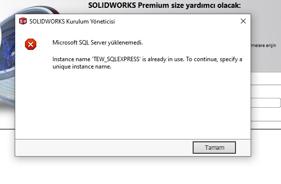 Microsoft SQL Server yüklenemedi. Instance name 'TEW_SQLEXPRESS' is already in use. To continue, specify a unique instance name. Tamam