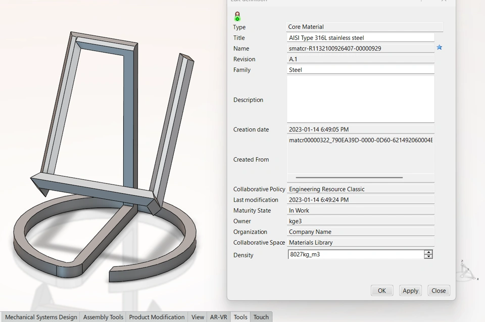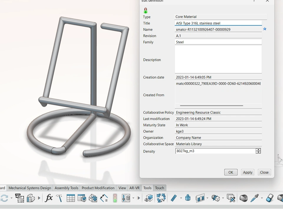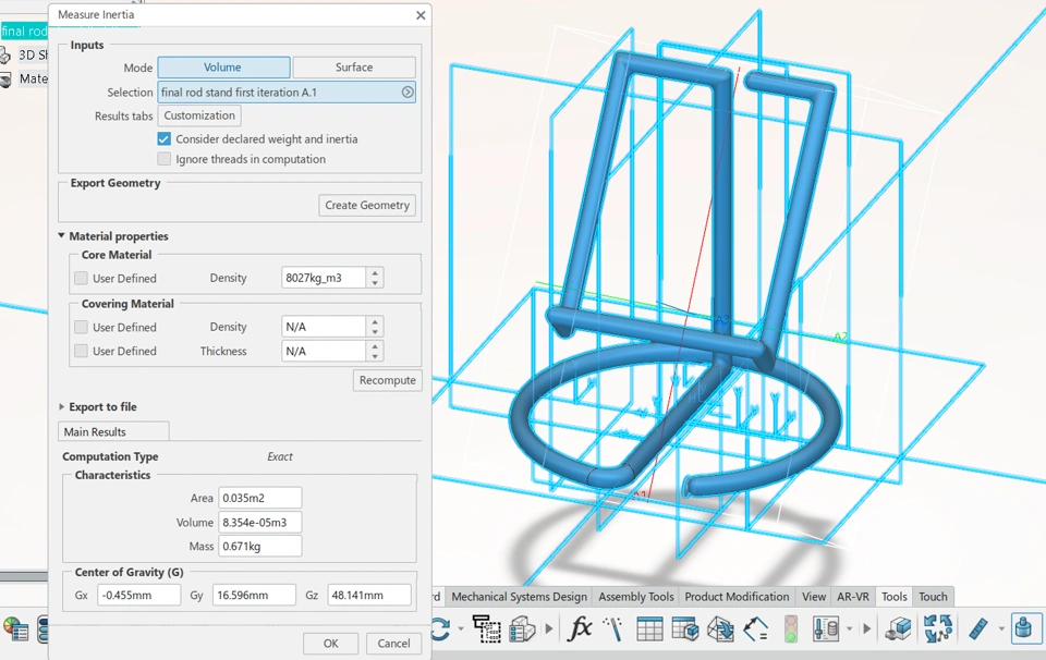 The design and structural analysis of the commercial aesthetic tablet stand demonstrated significant improvements from the first iteration to the final product. I've reduced around 16% of the mass in the final design and optimised it to absorbe the stress from the tablet. The selection of stainless steel 316 provided the necessary durability, while the iterative design process ensured an optimal balance between aesthetics and structural integrity. The final product exhibits excellent load-bearing capability, minimal deformation, and enhanced stability. The combination of Mechanical Scenario Creation and Parametric Design and Study in 3DEXPERIENCE proved effective in optimizing the design for real-world applications. This tablet stand is now ready for commercial production, offering a stylish and robust solution for users.