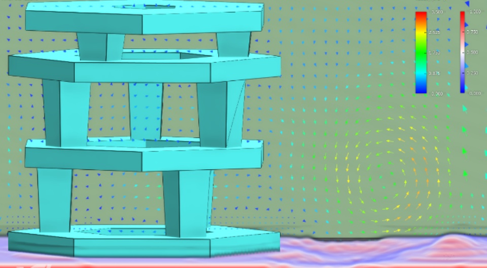 I wanted to present you my work on the simulation of the interaction of water with a structure placed on a saturated sand considered as a viscous fluid. The aim of this simulation is to be able to predict the displacement of sediments upstream of the structure. This study allows us to predict how long it will take for the structure to be completely buried.