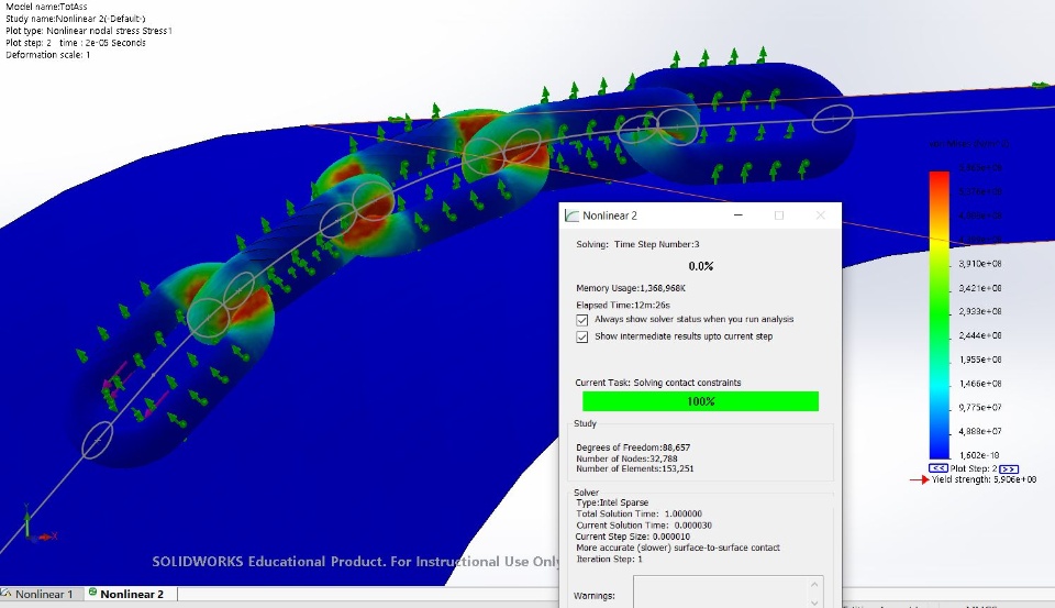 I currently have access to SolidWorks 2019 and Abaqus 2017. No previous experiences with Abaqus, but know the solver is much more suited for this kind of problem than Solidworks