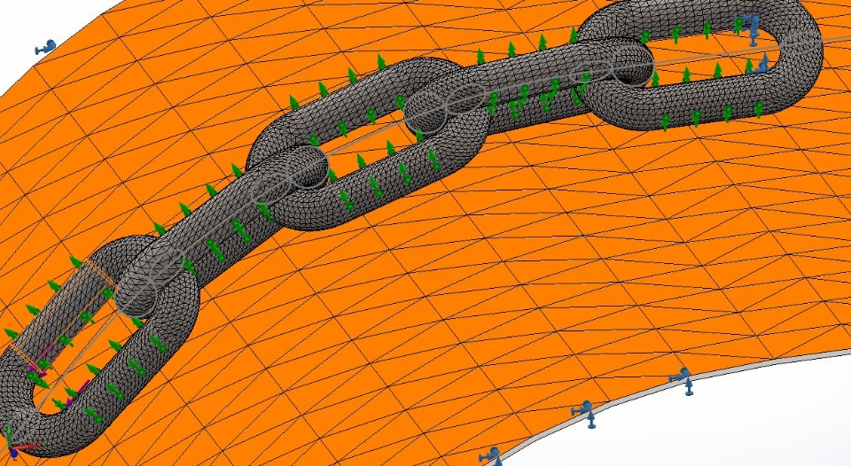I'm currently writing my msc on fatigue in mooring chains. As a part of the thesis, I'm required to run a FEA on a mooring chain over a geometry, to quantify a SCF for later calculations.
