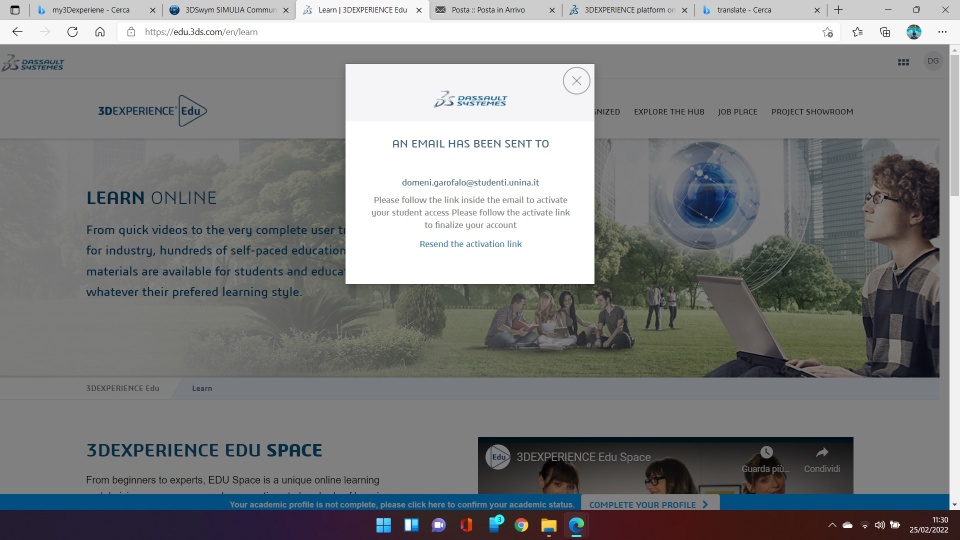 My academic profile is not complete on 3D experience but when i want to confirm it, the email doesn't arrive to me.