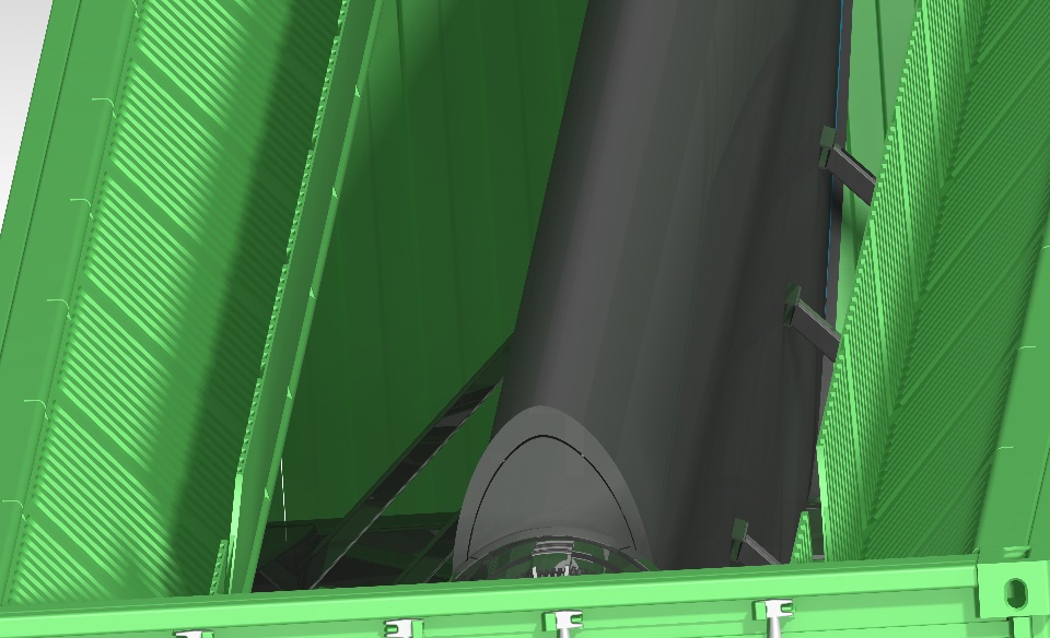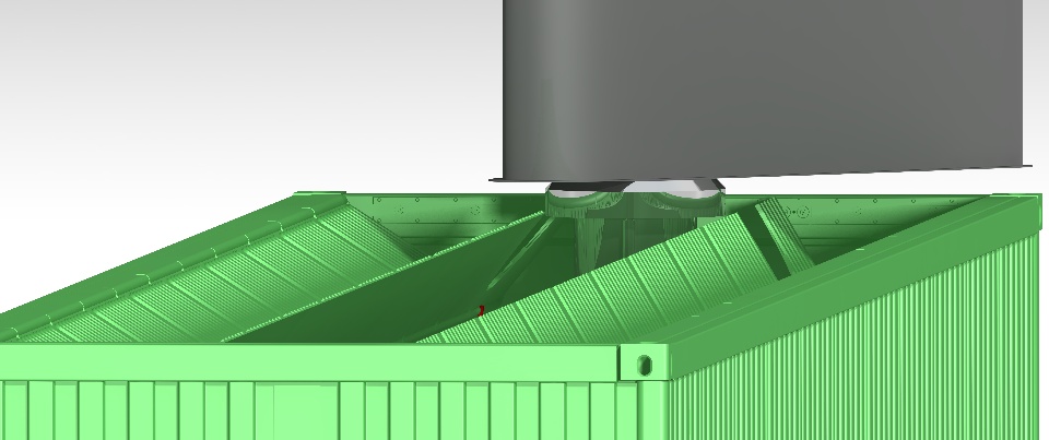 We have designed a deployable sail within a standard 40 ft. container. This means that it will be compatible with all current infrastructure. The Containersail stows itself whilst at port making it look and handle as any normal container. At sea the Containersail deploys by opening doors on top of the container. The sail can fold out and extend telescopically with the use of a hydraulic actuator. To design this CATIA was used for concept- and detailed design as well as simulation.