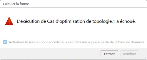 J'ai un problème lors de l'exécution d'un calcul de forme dans FGD. Le calcul se lance mais au bout 1min environ ce message d'erreur s'affiche mais il ne me donne aucune information sur d'où provient le problème.