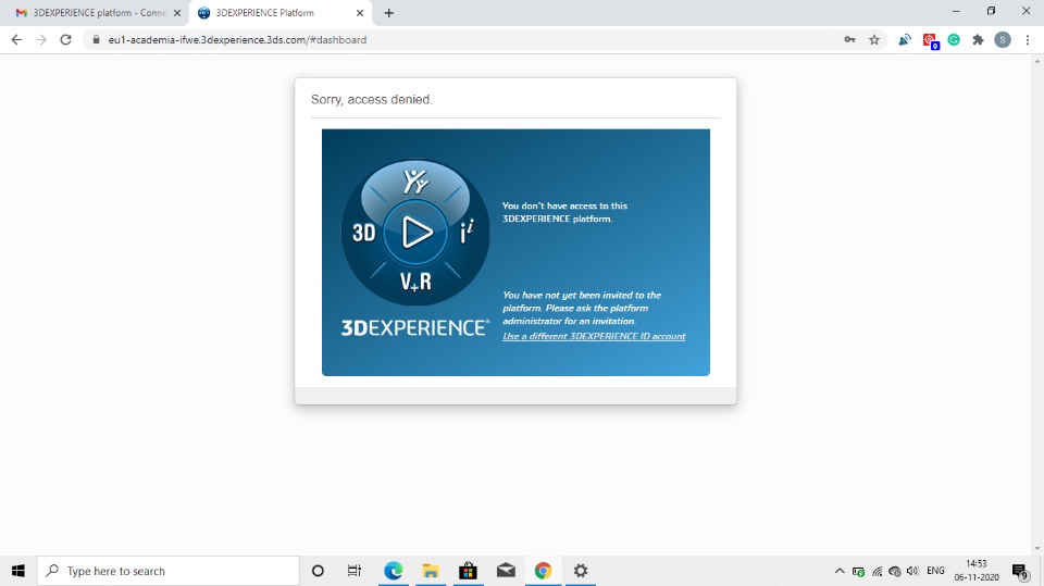 I have been granted a student license through the Back2School offer in 3DEXPERIENCE on 3rd November 2020, which was the same day on which I got another mail from 3DEXPERIENCE which said that the license that I requested on 23rd October 2020, has been approved. To put it clearly, I applied for a student license on 23rd October 2020. As it did not get approved even on 1st November 2020, I applied to the 'Back to School' offer on the same day. It happened that on the morning of 3rd November 2020, I received a mail that the license request through the 'Back to School' offer has been approved and I have been "invited". I tried to sign in to my 3DEXPERIENCE Platform from the link given in the mail. but was getting the message that I have attached herewith. Again, I received the approval mail for the license that I requested on 23rd October 2020 in the evening of 3rd November 2020 and I was able to download a simulation software using the latter license. I have received a mail on 6th November 2020 from 3DEXPERIENCE that if I do not access my 3DEXPERIENCE platform within this week, my license might get canceled. But when I tried to sign in to my platform through the link given in today's mail, it showed the same message, that I have enclosed herewith. Even today I received a mail from Support.3DSAcademy, which says that if I do not access the platform within 7 days, my license will be deactivated. But the same message is showing, that I have not been invited to the platform, whereas I have been invited by Mansi Deshpande, as it said in the mail of 3rd November 2020. Can someone please help me with this problem? There are no links to 'sign in' in the latest mail. The link for signing in is only in the Invitation mail, by clicking on which it gives the message as I have attached herewith, after logging in using my 3DExperience ID.
