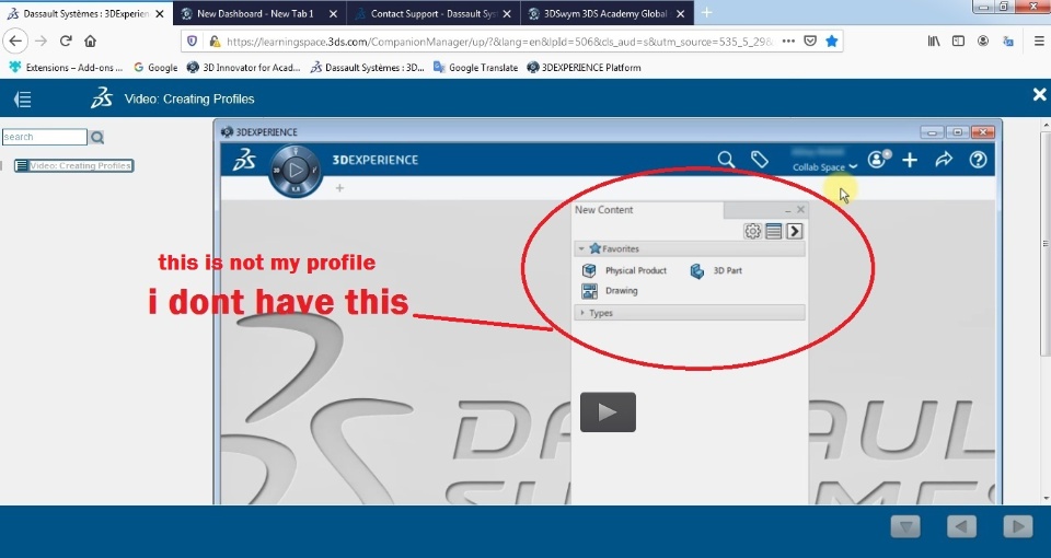 i dont have same options on my profile as in my learning course videos . please help check both pictures