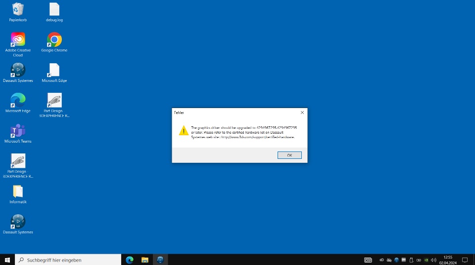 Every time I try to open part design, a message appears. When I close it, part design opens, but I can see only a white surface.