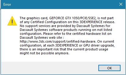 Edu 3DEXPERIENCE Graphics Card Error